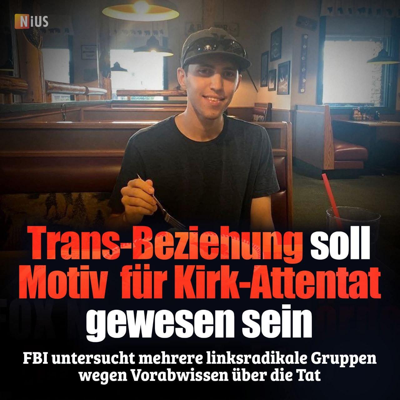 • Der mutmaßliche Attentäter des konservativen Bürgerrechtlers Charlie Kirk, der 22-jährige Tyler Robinson, soll mit einer Transgender-Frau zusammengelebt haben. Das berichtet die Fox-Journalistin Brooke Singman. Robinsons Partner – ein Mann, der zu einer Frau transitioniert – soll laut Ermittlern vollständig mit dem FBI kooperieren.
